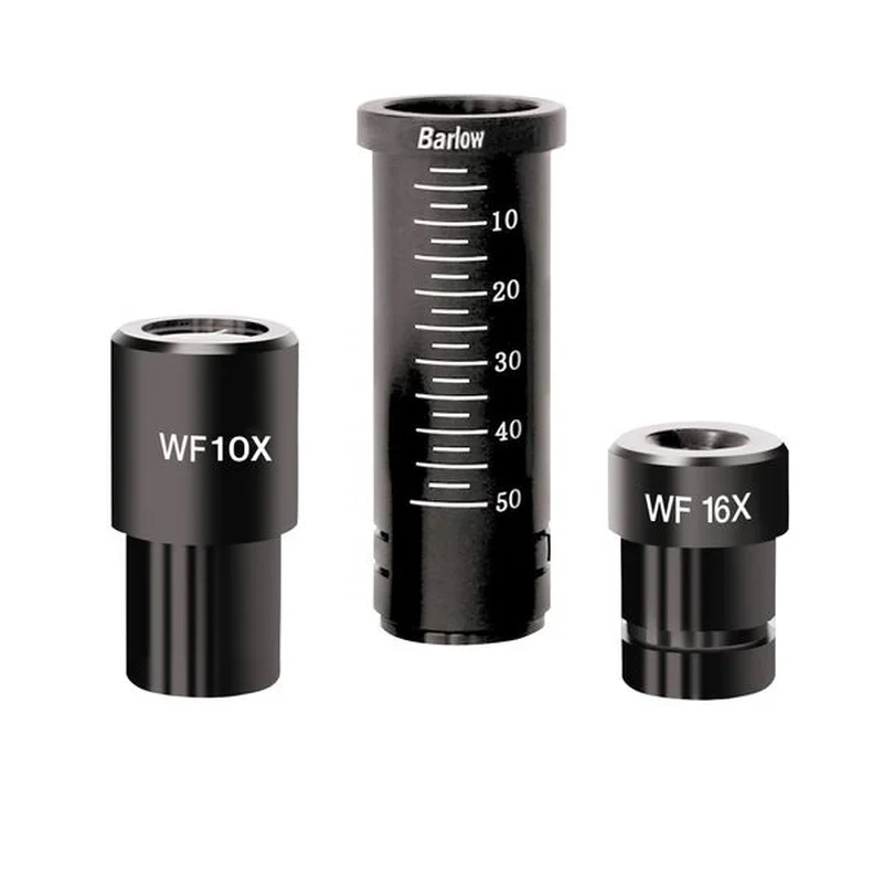 Комбінація двох ширококутних окулярів та трьох об'єктивів дає можливість отримати збільшення 640х. Унікальним є використання у мікроскопі лінзи Барлоу для отримання безступінчастого (плавного) зумування зображення, завдяки чому досягається максимальне збільшення 1280х.