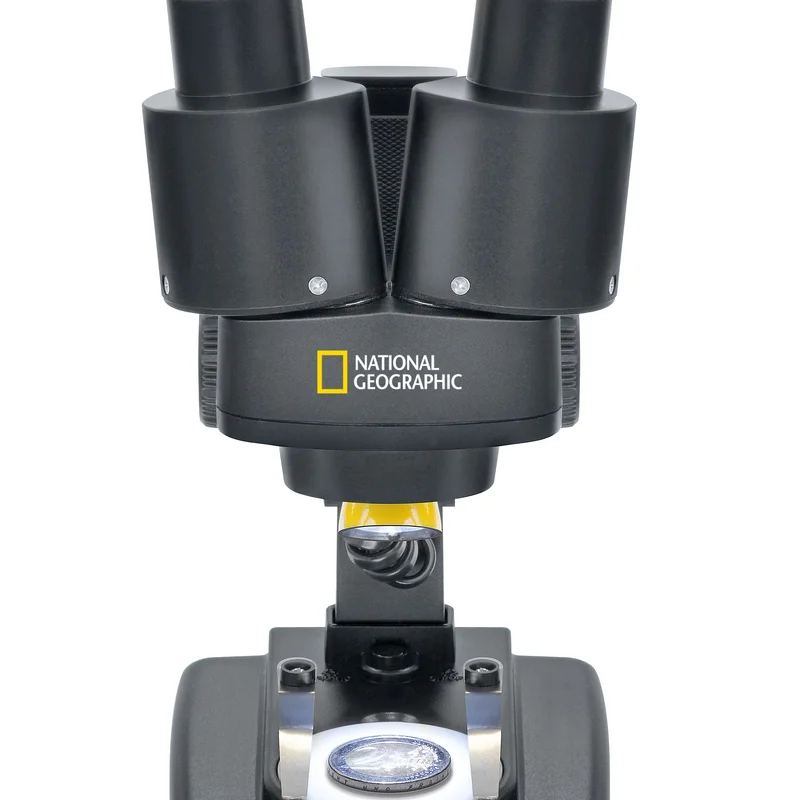 Спостерігати двома очима завжди краще, ніж одним. Мікроскоп National Geographic Stereo 20x дозволить спостерігати стереоскопічне збільшене в 20 разів зображення багатьох непрозорих та тривимірних об'єктів, які оточують нас. Не дивлячись на те, що це прилад початкового рівня - він цілком задовольнить запити тих, хто вивчає монети, займається нескладним ремонтом мікросхем, вивчає поверхневу структуру непрозорих тіл. У комплекті поставляється 12 зразків мінералів для вивчення. Завдяки бінокулярній конструкції, що створює об'ємне зображення, підсвічування світлом, що відбиває, і великій робочій відстані, за допомогою цього мікроскопа зручно спостерігати складові частини і деталі щодо великих зразків, таких як монети, марки, мінерали, мікросхеми і т д. Предметний столик обладнаний затискачами для утримання зразка, а також заглибленням зі знімним чорно-білим диском для спостереження зразків у розсіяному світлі. Окуляри зі змінною міжосьовою відстанню досить зручні для спостережень. Невелика вага та повна автономність від стаціонарних джерел живлення роблять цей мікроскоп дуже мобільним. Цей мікроскоп має хорошу скляну оптику, що дозволяє спостерігати досить якісну картинку і добре розрізняти дрібні деталі структури зразка, в чому ви зможете переконатися, розглядаючи мінерали, що постачаються в комплекті з мікроскопом. Опціонально мікроскоп можна забезпечити потужнішими окулярами, аксесуарами, джерелами світла і PC-микроокуляром.
