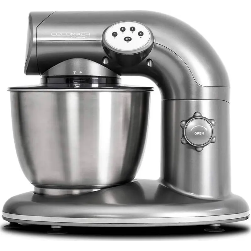 Приготуйте будь-який рецепт за допомогою міксера Cecomixer Compact. Він має великий опір, планетарний рух і неймовірний двигун потужністю до 1200 Вт. Оригінальний сучасний дизайн Місткість 5.6 літрів Потужний двигун 1200 Вт 6 Функцій Cecomixer Compact замішує, збиває, монтує, емульгує, видаляє і змішує будь-які інгредієнти. Він має 4 рівні швидкості і до 1200 Вт потужності для обробки будь-яких блюд. Збити яєчні білки, збити вершки, приготувати кращі тістечка і креми або замісити власний хліб. Спробуйте і відкрийте усі можливості, які він пропонує. Планетарний рух Він має планетарний рух для повного обертання лопатей і стержнів. Він також обертається навколо усієї чаші у напрямі планетарного переміщення. Це ідеально підходить для насолоди кондитерськими виробами, такими як смузи, креми і інші вишукані десерти. Оптимальна експлуатація Він оснащений технологією HardGear System, яка використовує усю потужність двигуна. Він досягає максимальної потужності до 1200 Вт для легкої обробки ваших інгредієнтів. Чаша 5.6 літрів Cecomixer Compact включає сталеву чашу місткістю до 5,6 л. Ви можете приготувати тісто до 2 кг і приготувати рецепти для усієї сім"ї. Електронне управління швидкістю Він легко адаптується до потреб кожного блюда. Управляйте 4-мя швидкостями найпростішим способом завдяки панелі управління зі світловими індикаторами. Скористайтеся найнижчими швидкостями для розминки і найшвидшими для збивання вершків. Захист від бризок Ви можете готувати найзручнішим і чистішим способом. Міксер включає аксесуар в якості кришки для відвертання розбризкування. Різноманітні насадки Включає металеві аксесуари найвищої якості, які допоможуть вам досягти ідеальних результатів в усіх ваших розробках. Система перевірки безпеки Cecomixer Compact працює з максимальною безпекою. Він був розроблений з системою, яка дозволяє працювати тільки тоді, коли корпус закритий і стержні знаходяться усередині чаші.