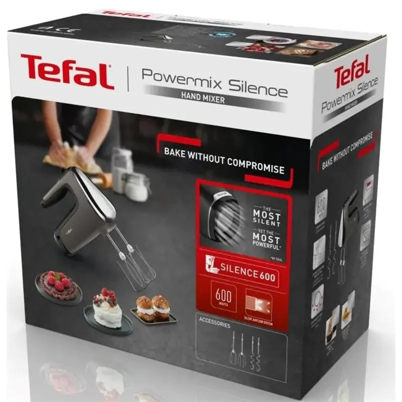 Міксер Tefal Powermix Silence HT650E38 — чудовий помічник для реалізації ваших кулінарних ідей! Мотор потужністю 600 Вт допоможе швидко впоратися з потрібним завданням, а лаконічний дизайн сподобається кожній господині. Передова технологія Silence 600 Модель поєднує в собі ідеальну якість змішування та передову технологію шумозаглушення, що гарантує комфорт роботи та чудовий результат під час кожного використання. Потужність 600 Вт Потужність міксера 600 Вт дасть змогу вам швидко та легко досягти бажаної консистенції перемішування. Ергономічна ручка Зручна ручка з приємним на дотик покриттям забезпечує оптимальну ергономіку для абсолютно комфортного та легкого змішування. Варіанти швидкості та режим Турбо Різні варіанти швидкості та режим турбо дають змогу підібрати оптимальні параметри для досягнення бажаного результату. Готуйте різноманітні кулінарні шедеври легко. 2 вінчики з неіржавкої сталі Високоякісні віночки з неіржавкої сталі легко впораються з поставленим завданням: від ідеально збитих яєчних білків та збитих вершків до смачного тіста для кексів. 2 гаки для тіста з неіржавкої сталі Міцні гаки для тіста з неіржавкої сталі легко перемішають щільне та пружне тісто для хліба, піци та інших борошняних виробів.