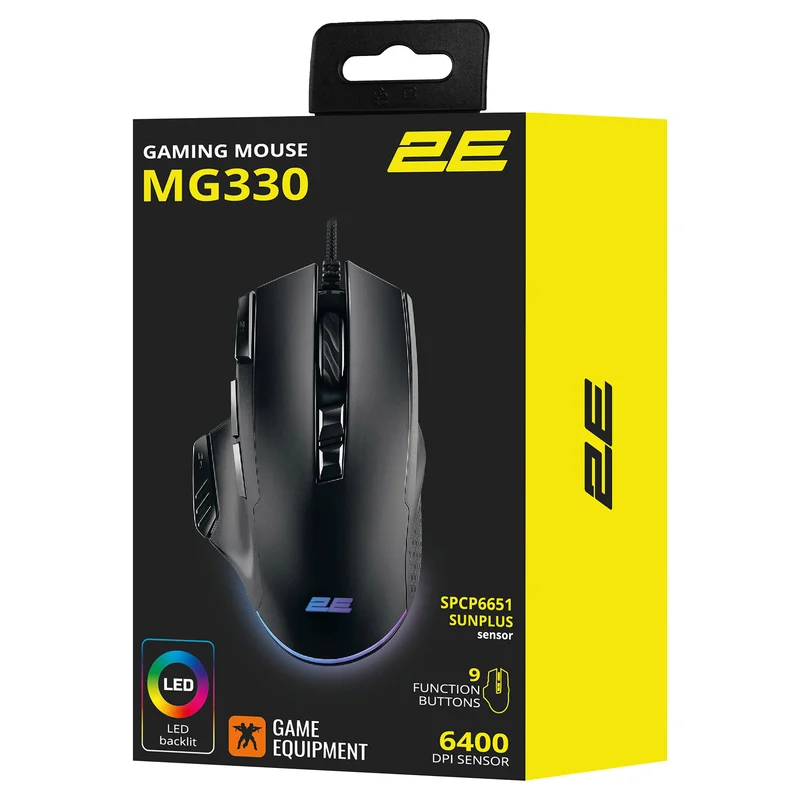 Оновлена версія ігрової миші 2E GAMING MG330 оснащена сенсором SunPlus SPCP6651 з роздільною здатністю до 6400DPI, а також потужним ПЗ і яскравим RGB-підсвічуванням. Модель MG330 вирізняється серед ігрових мишей своїм продуманим дизайном і зручністю. Цілих 9 функціональних кнопок до ваших послуг! Завдяки ергономічній формі рука не втомлюється навіть через декілька годин інтенсивного бою. Бокові частини оснащені рельєфними вставками для кращого контролю рухів, корпус зібраний надійно і міцно, кабель в тканинному обплетенні для тривалого використання, а додаткові кнопки суттєво розширюють можливості у грі. Миша 2E GAMING MG330 – надійна зброя переможців! ПЕРЕВАГИ: • Продумана ергономіка для комфортного використання • Міцний корпус з якісних матеріалів • Стильний ігровий дизайн • 9 програмованих кнопок • Double click • Ефектне RGB-підсвічування • Перемикачі Huano 10M • Індивідуальне налаштування за допомогою програмного забезпечення • Можливість тонкого налаштування DPI • Кабель у тканинному обплетенні • Сенсор SunPlus SPCP6651 ІНДИВІДУАЛЬНЕ НАЛАШТУВАННЯ ЗА ДОПОМОГОЮ ПРОГРАМНОГО ЗАБЕЗПЕЧЕННЯ • Потужне та просте у використанні ПЗ дозволяє швидко змінити налаштування параметрів DPI, RGB-підсвічування, а також призначення кнопок і записати макроси. СУМІСНІСТЬ • Windows 10/7 и старіші версії, Linux, MacOS (без можливості використання фірмового ПЗ!)