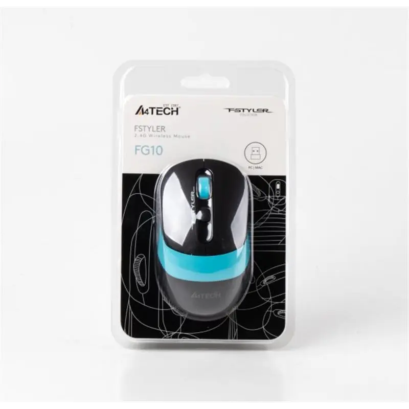 Бездротова мишка A4TECH FG10 виконана в стильному дизайні. Вдосконалене потужне бездротове з'єднання на частоті 2.4 ГГц забезпечує безперебійну роботу на відстані до 10-15 метрів. Особливості Регульований 4-х рівневий режим енергозбереження. Перехід в сплячий режим через 0.2 с бездіяльності мишки М'які антиковзні гумові накладки пристрою забезпечують абсолютний комфорт при роботі як правою, так і лівою рукою Життєвий цикл більш 5 мільйонів кліків Вимикач живлення. Кнопка вимикання на задній панелі робить цю бездротову мишу ідеальним супутником в дорозі