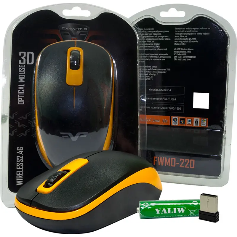 Миша бездротова Frime FWMO-220BY Чорний/Жовтий