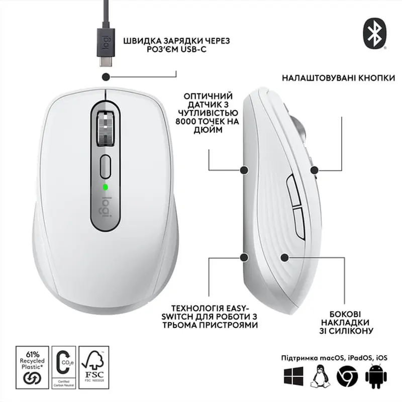 Миша бездротова Logitech MX Anywhere 3S Pale Grey (910-006930)