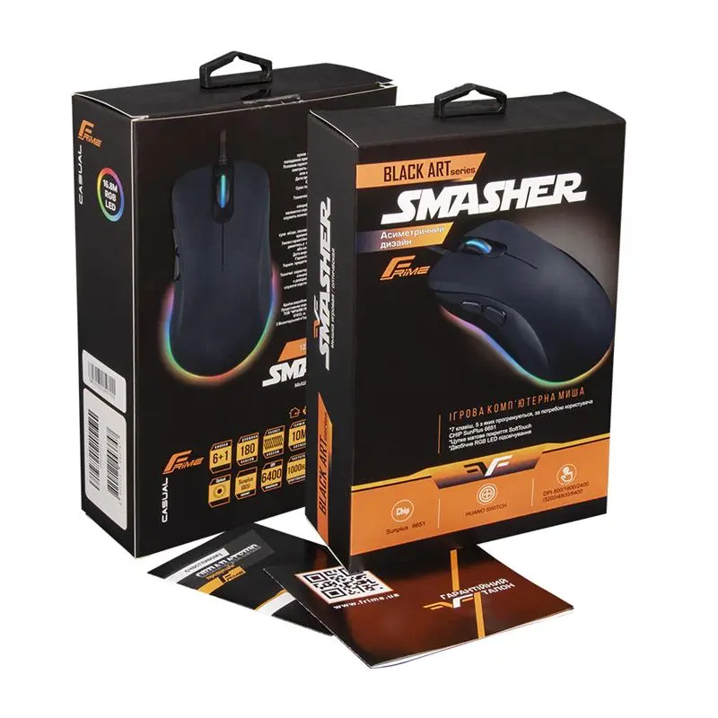 Провідна миша Smasher Black стане надійним і ефектним доповненням до ноутбука або комп’ютера. Вона поєднує в собі стильний дизайн і ергономічну форму, розширену функціональність і досконале виконання - властивості, притаманні всій продукції відомого виробника Frime. Маніпулятор продуманий в кожній деталі, щоб дарувати максимальний комфорт як при виконанні щоденних завдань, так і під час тривалої гри. Універсальна модель Smasher Black ідеально підходить і для офісної роботи, і для геймерів, гарантуючи незмінно чудовий результат. Вона повністю готова до установки - досить лише підключити до USB-порту. Девайс виконаний з якісного, приємного на дотик матеріалу, має повнорозмірний корпус з оригінальним підсвічуванням, кабель захищений від перегину біля основи. Спеціальна конструкція оптимізована під праву руку. Вигнута поверхня забезпечує зручне положення пальців і запобігає втомі. Тип сенсора пропонованого пристрою - оптичний. Завдяки вдосконаленій технології, досягається висока точність руху курсора, він гранично чітко і плавно переміщається по екрану. Сама миша відмінно ковзає практично на будь-якій рівній поверхні. Додаткові бічні кнопки дозволяють налаштовувати багатофункціональний маніпулятор під свої смаки. Колесо з плавною прокруткою працює практично беззвучно. Якщо в пріоритеті стиль, надійність і зручність, Smasher Black - безпрограшний варіант!