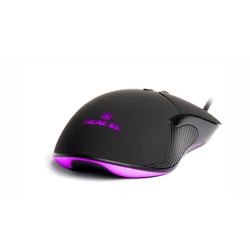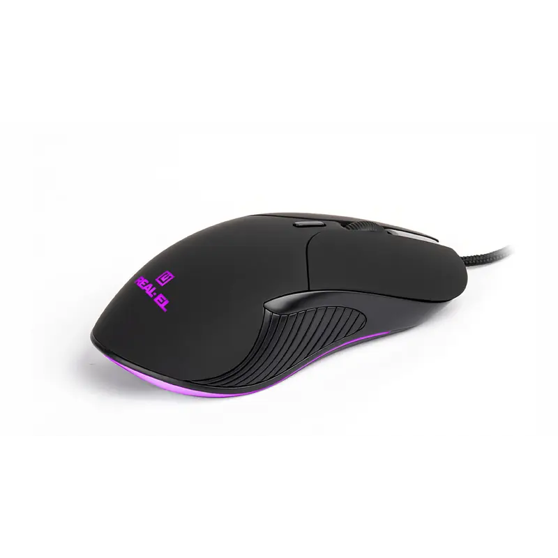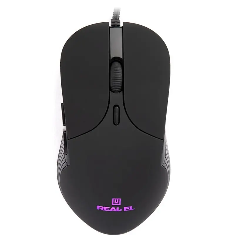 Особливості оптичної миші REAL-EL RM-295: 5 + 1 клавіші (колесо прокручування), 2 кнопки навігації «вперед»/«назад», кнопка перемикання режимів dpi, інтерфейс USB, працює практично на будь-якій поверхні, природна форма зручна для руки.