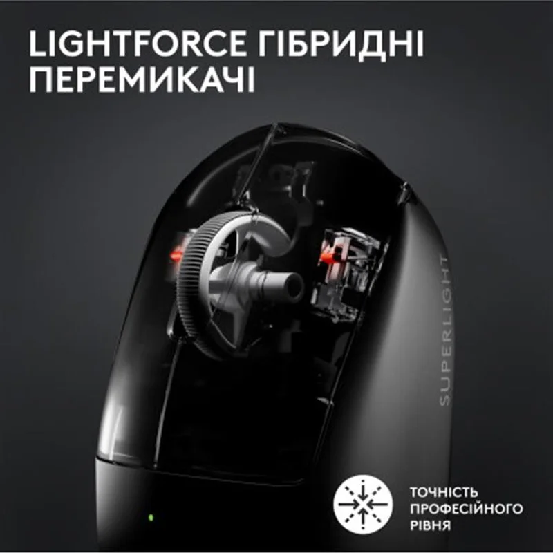 ПРОФЕСІЙНА ІКОНА ЕВОЛЮЦІОНУВАЛА Швидше. Точніше. Створено для перемоги у чемпіонатах. Наступне покоління нашої професійної ігрової миші вагою лише 60 г. Вдосконалена завдяки співпраці з найкращими гравцями світу. ГРАЙТЕ З ПРОФЕСІЙНОЮ ТОЧНІСТЮ Нова розробка гібридних оптико-механічних перемикачів LIGHTFORCE забезпечує точність та надійність на іграх найвищого рівня. ТОЧНЕ КАЛІБРУВАННЯ СЕНСОРА Відчуйте надійне відстеження понад 500+ IPS, до 32 000 DPI та точне калібрування сенсора з найпродуктивнішим датчиком у геймінгу. ШВИДКА ЧАСТОТА ОБНОВЛЕННЯ Надійність технології LIGHTSPEED – тепер покращена для швидшої частоти оновлення порівняно з попереднім поколінням. ПЛАВНІСТЬ І БЕЗШОВНІСТЬ Глайди з нульовим вмістом PTFE забезпечують комфортну плавність руху. ДО 95 ГОДИННИХ ГРИ Розрахована на довгу гру, до 95 годин постійного використання – знищуючи більше бар’єрів між вами та вашою грою. ТЕХНОЛОГІЯ ПРОФЕСІЙНОГО РІВНЯ Найпопулярніша миша для кіберспорту, вдосконалена. Тепер із частотою опитування 2K, роз’ємом USB-C, живленням на 95 годин та сумісністю з технологією POWERPLAY.