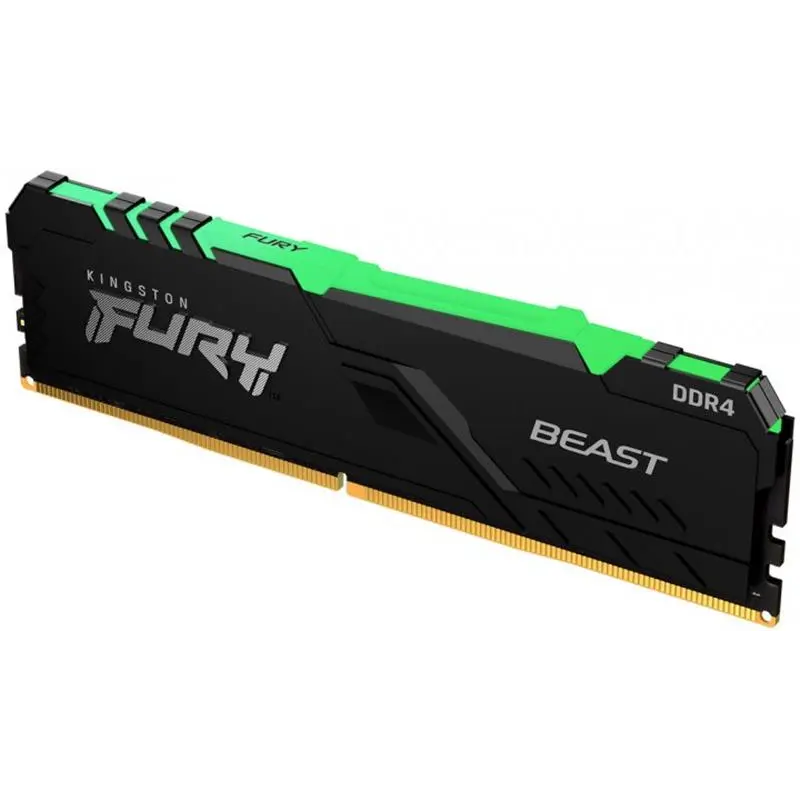 Модуль пам'яті Kingston FURY Beast DDR4 RGB допомагає висловити свій стиль і забезпечує підвищення продуктивності завдяки частоті до 3733 МГц, агресивному дизайну та RGB-підсвічуванню по всій тривалості модуля, що забезпечує плавні, потрясаючі світлові ефекти. Він відрізняється самоналаштованою можливістю автоматичного розгону пам'яті Plug N Play на частотах 2666 МГц та сумісний з профілями Intel XMP та процесорами AMD Ryzen. Модулі FURY Beast DDR4 RGB не нагріваються за рахунок використання стильного низькопрофільного тепловідведення. Ці модулі, які пройшли повну перевірку на робочій частоті та забезпечуються гарантією на весь термін служби, стануть легким, зручним оновленням вашої системи на основі процесорів Intel або AMD.
