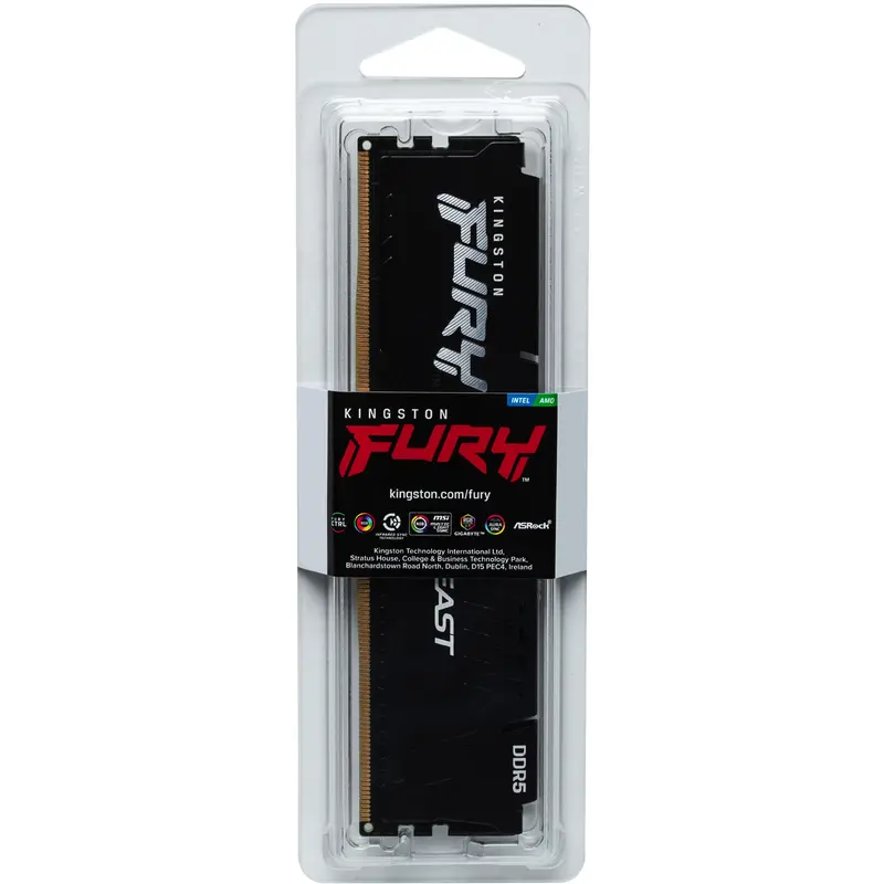 Модуль оперативної пам'яті Kingston FURY Beast DDR5 об'ємом 16 ГБ KF560C40BB-16 призначений для підвищення продуктивності сучасних ПК в іграх, а також задачах стримінгу, редагування відео високої роздільної здатності, рендерингу та інших ресурсомістких додатків. Оснащений теплорозподільником чорного кольору, одноренковий модуль DDR5-6000 CL40 KF560C40BB-16 зібраний із восьми чіпів щільністю 2Gx8 біт, сумісний з усіма платформами, що підтримують DDR5. Крім стандартного профілю JEDEC (DDR5-4800 CL40-39-39 1.1 В), модуль забезпечений трьома XMP 3.0 профілями (DDR5-6000 CL40-40-40 1.35, DDR5-5600 CL40-40-48 30 -38-38 1.1). З чудовою швидкістю, подвоєною з 16 до 32 кількістю банків та подвоєною з 8 до 16 довжиною пакету Kingston FURY Beast DDR5 ідеально підходить для геймерів та ентузіастів, яким потрібна більш висока продуктивність на платформах наступного покоління. Збільшуючи швидкість, ємність та надійність, Kingston FURY Beast DDR5 пропонує цілий арсенал розширених функцій, таких як ECC на кристалі (ODECC) для підвищення стабільності на екстремальних швидкостях, два 32-бітових підканали для підвищення ефективності та інтегрована в модуль схема управління живленням (PMIC) , що забезпечує контроль та підстроювання напруг безпосередньо на модулі пам'яті. При грі в найекстремальніших умовах, при стрімінгу у форматі 4K і вище або при серйозній анімації та 3D-рендерингу, Kingston FURY Beast DDR5 – це наступне підвищення рівня, при якому ідеально поєднуються стиль та продуктивність. Пам'ять Kingston FURY Beast DDR5 була протестована та схвалена MSI, ASUS, ASRock та Gigabyte – провідними світовими виробниками материнських плат. Крім того, Kingston FURY Beast DDR5 отримала сертифікати Intel XMP 3.0-Ready та Certified, що означає, що користувачі можуть розраховувати на простий, стабільний та сертифікований розгін. Крім того, нова функціональність дозволяє зробити налаштування пам'яті ще зручнішою завдяки двом вбудованим профілям частоти та таймінгів, в які користувач може записати свої власні налаштування. Пам'ять лінійки Kingston FURY Beast DDR5 забезпечена обмеженою довічною гарантією та легендарною надійністю Kingston. Особливості Kingston FURY Beast DDR5 • Підвищена стабільність при розгоні: Корекція помилок на кристалі (On-die ECC, ODECC) допомагає забезпечити цілісність даних під час розгону пам'яті для підвищення її продуктивності. • Збільшена ефективність: Подвоєння як кількості банків, так і довжини пакету, а також поділ шини на два незалежні 32-бітові субканали дозволяє DDR5 значно ефективніше працювати з сучасними іграми, програмами та ресурсомісткими додатками. • Сертифікація Intel XMP 3.0-Ready та Certified: Заздалегідь оптимізовані таймінги, частоти та напруги для забезпечення високої продуктивності та стабільності при оверклокінгу, а також можливість зберегти профілі користувача в програмованому PMIC. • Схвалена провідними світовими виробниками материнських плат: Протестована і затверджена — користувач може з упевненістю використовувати цю пам'ять з материнською платою, яку вони віддають перевагу. • Низькопрофільний теплорозподільник: Теплорозподільник оригінального дизайну забезпечує стильний зовнішній вигляд і високу ефективність охолодження.