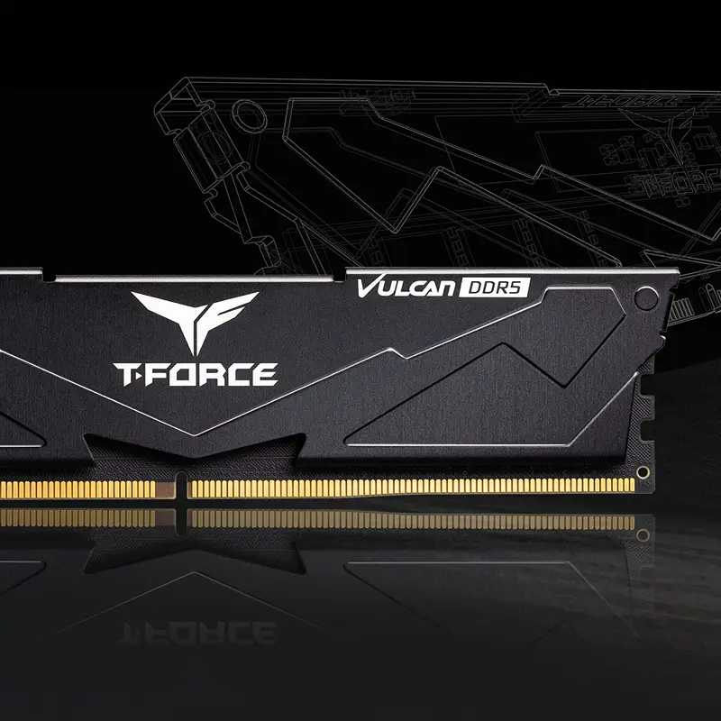 Елегантний дизайн Для модуля пам'яті T-FORCE VULCAN DDR5, компанія TEAMGROUP розробила чудовий дизайн з яскравим підсвічуванням, яке підкреслює естетику виробу та демонструє унікальні особливості VULCAN DDR5, серед яких висока продуктивність та можливість оверклокінгу. Посилена конструкція Модуль пам'яті VULCAN DDR5 виготовляється з одного блоку алюмінієвого сплаву шляхом штампування, а верхня конструкція фіксується за допомогою фіксатора, що замикається. Охолодження TEAMGROUP використовує високоякісний теплопровідний кремній для посилення склеювання між охолодним ребристим радіатором та пам'яттю. Кремній також забезпечує неймовірне охолодження швидко передаючи тепло зверху вниз, забезпечуючи оптимальну робочу температуру пам'яті.
