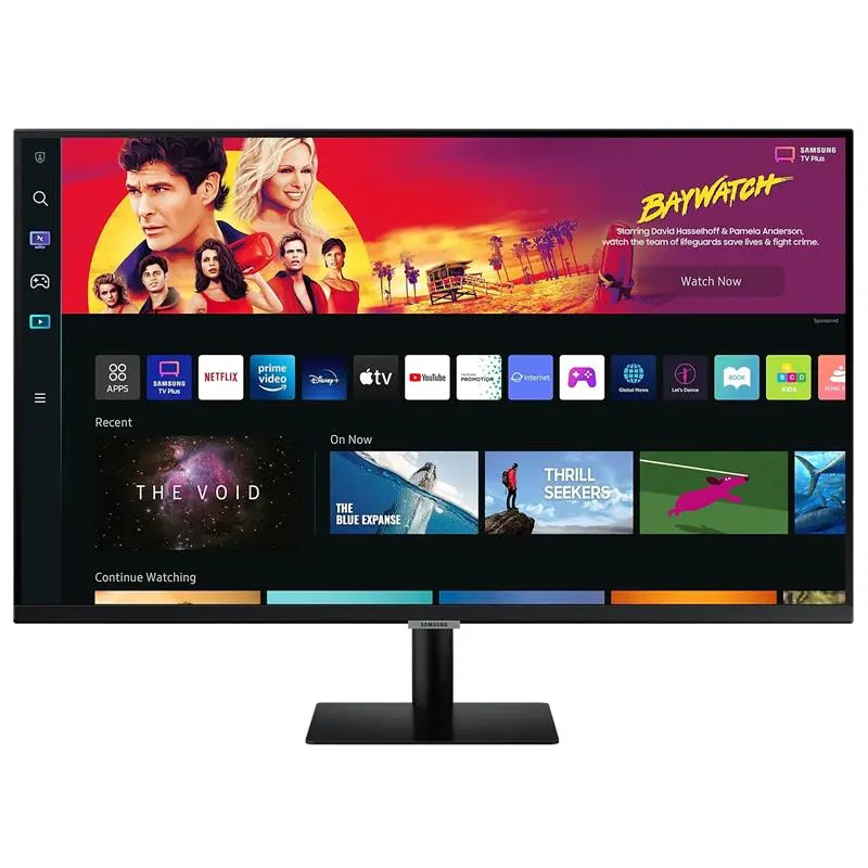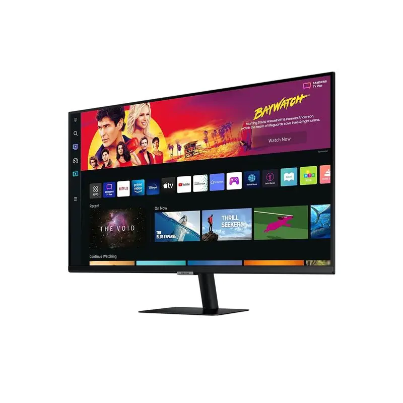 Дивіться, грайте, живіть стильно Усе, що вам потрібно, прямо на вашому екрані. Дивіться, працюйте та спілкуйтеся – і все це без під’єднання окремого ПК – за допомогою Smart Monitor. Ваш улюблений контент, програми для підвищення продуктивності та відеодзвінків вбудовані для простішого та стильнфшого налаштування робочого столу, яку приємно використовувати щоразу. Ваші улюблені шоу у вашому просторі Досвід смарт-ТВ Невимушена розвага. Насолоджуйтесь Netflix, YouTube та іншими потоковими сервісами, просто під’єднавши монітор до мережі Wi-Fi. Samsung TV Plus також пропонує безкоштовний контент у прямому ефірі та на запит без завантаження або реєстрації, а Universal Guide надає персональні рекомендації щодо контенту. Продуктивність без ПК Робочий простір Досвід без комп’ютера. Переглядайте веб-сторінки, редагуйте документи та працюйте над проектами — і це без необхідності використання окремого ПК. З новим робочим режимом можна також віддалено отримувати доступ до іншого ПК, використовувати програми Microsoft 365 і навіть під’єднуватися до мобільних пристроїв Samsung за допомогою Samsung DeX для безперебійної роботи. Концентратор для вашої оселі, з будь-якої кімнати Перетворіть свій Smart Monitor на центр керування будинком, під’єднавши його до домашніх продуктів IoT за допомогою SmartThings. Розслабтеся, вимкнувши світло, опустивши жалюзі та встановивши термостат на ідеальну температуру, і все це за допомогою Smart Monitor для ідеально розслабленого вечора. Де ігри об’єднуються Ігровий центр Розширте власний досвід. Нещодавно доданий ігровий центр означає, що цей універсальний дисплей дозволяє дивитися фільми, працювати та навіть грати в ігри, використовуючи лише монітор. Отримайте доступ, переглядайте та транслюйте широкий вибір ігор - просто ввімкніть Smart Monitor і грайте без ПК або консолі. Швидке та просте налаштування, щоб здобути перемогу Ігрова панель Миттєво перевіряйте та контролюйте налаштування гри. Тепер ви можете легко переглянути стан найважливіших налаштувань, таких як FPS або HDR. Змінюйте час відгуку або співвідношення сторін екрана, а також режим зображення у грі, не залишаючи ігровий екран, щоб зосередитись на своїй меті. Контент на великому екрані став простішим Мобільний зв’язок Зручне під’єднання. Завдяки інтеграції AirPlay ви можете бездротово зв’язати пристрої Apple до Smart Monitor і переглядати їх на великому екрані. Насолоджуйтесь улюбленим контентом з iPhone, iPad та Mac на Smart Monitor і навіть віддзеркалюйте програми, документи та веб-сайти. Насолоджуйтесь контентом у яскравих деталях UHD Дивовижна якість зображення для роботи й ігор. Смарт-монітор з 4-кратним збільшенням пікселів порівняно з Full HD забезпечує більше місця на екрані та дивовижно реалістичні зображення UHD. Вдень переглядайте більше документів одночасно, а ввечері дивіться фільми у кінематографічній 4К якості.