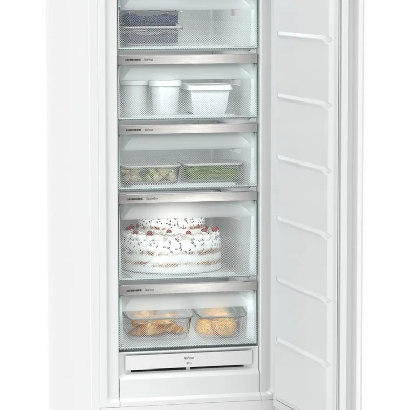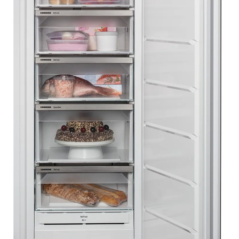 FrostProtect Не всі морозильні камери встановлюються в опалювальному приміщенні – деякі стоять навіть у холодних гаражах чи сараях. Добре, що ваш Liebherr найкраще підготовлений до такої прохолодної обстановки: адже всі компоненти розраховані на температуру навколишнього середовища до -15 ° C і гарантують роботу. Технологія SmartDevice Щоб підключити цей прилад до повноцінної системи "Розумного дому", достатньо докупити опціональний модуль дистанційного керування SmartDeviceBox. Після цього на екрані вашого телефону або на спеціальному веб-сайті в вебі можна відстежувати стан холодильника, змінювати опції або активувати потрібні функції. Система NoFrost Система авторозморожування морозильного відділення працює за принципом кондиціонера: заморожує продукти за допомогою циркуляції охолодженого та сухого повітря. Іній накопичується на прихованому випарнику та автоматично відтає. Завдяки цьому продукти заморожуються швидше та без утворення снігу, а догляд за приладом спрощується. Ущільнювач дверей Гумовий ущільнювач дверей відтепер відповідає кольору корпусу приладу, а також є знімним, завдяки чому полегшується його чищення та заміна за потреби. Сенсорний дисплей 2.4" Розташований за дверима приладу сенсорний дисплей діагоналлю 2.4 дюйма має високу роздільну здатність та контрастність, що дозволяє здійснювати зручне та наочне налаштування температури та контролювати всі функції пристрою. Концепція основи Ваш холодильник має бути потужним і зручним та водночас екологічним? Тоді Liebherr створений для вас. Наша технологія BluPerformance робить його універсальним: він забезпечує додатковий обсяг та холодопродуктивність, але споживає при цьому дуже мало енергії. І дослухайтеся: ви майже нічого не чуєте. Тому що ваш Liebherr працює дуже тихо, незважаючи на свою високу продуктивність. SpaceBox У Liebherr ви розмістите навіть дуже великі продукти: тому що індичці розміру XL або багатоярусному торту-мороженому потрібно просто більше місця. Для таких випадків у вашому Liebherr є SpaceBox: завдяки великій висоті 250 мм він пропонує багато додаткового місця навіть для заморожених продуктів великого розміру. І це допоможе вам у гнучкому зберіганні запасів. VarioSpace Хочете надійно зберегти великий торт-морозиво до літньої вечірки? Для морозильної камери Liebherr це не проблема: вона знає, що іноді потрібно просто більше місця. Завдяки системі VarioSpace можна просто вийняти окремі висувні контейнери морозильного відділення та скляні полиці під ними: ось вам і дуже високий простір для зберігання! Можна мити в посудомийній машині Оснащення вашого Liebherr подвійно зручно: з одного боку, він допомагає у повсякденному використанні, а з іншого боку, його легко чистити. Потрібно помити маслю, FlexSystem або лоток для кубиків льоду? Просто поставте їх у посудомийну машину. Завдяки цьому у вас залишиться більше часу для інших справ. Сигналізація про відключення живлення Ваш Liebherr – справжній ангел-охоронець продуктів: у разі відключення живлення він надійно подає сигнал тривоги. Його ви зможете не лише чути, а й бачити. На екрані відображається максимально досягнута температура у морозильному відділенні. Але вас ніколи не потурбують без потреби: якщо при короткочасному відключенні живлення температура не критично підвищується, сигнал тривоги залишається вимкненим. Сигналізація про підвищення температур