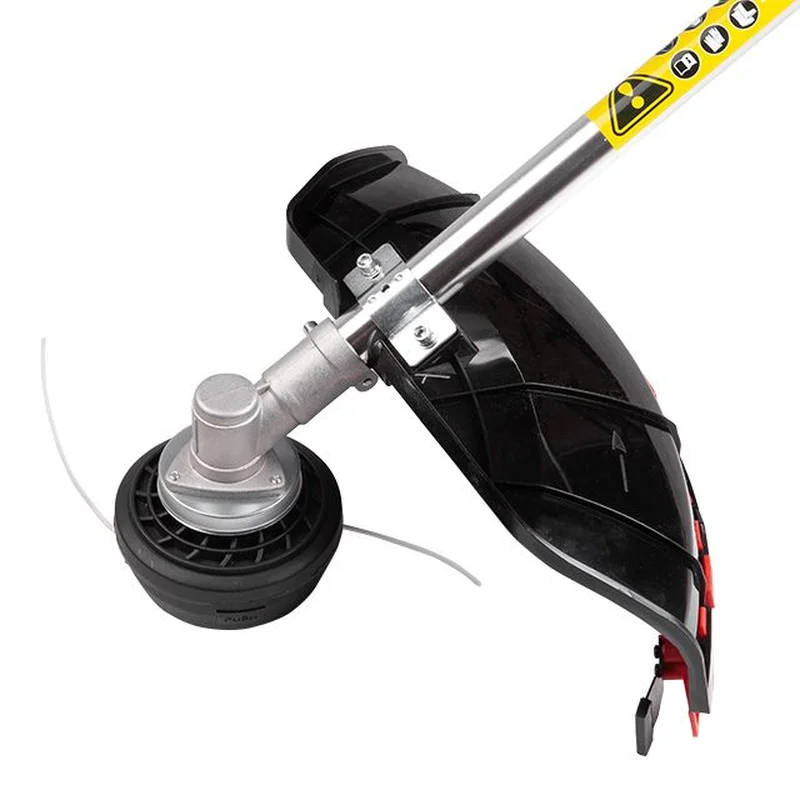 Бензокоса оснащена двотактним двигуном, потужністю 1850 Вт і забезпечує відмінну продуктивність та ефективну роботи навіть з жорсткою і густою травою, очеретом тощо. Об'єм паливного бака 1,2 л з витратою до 1 л/год. під великим навантаженням.