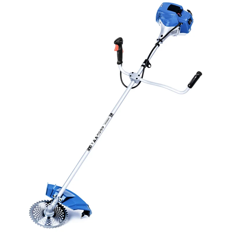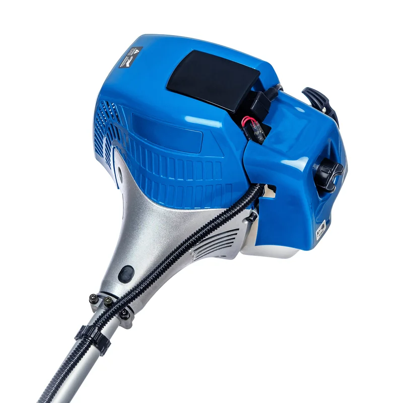 Опис В якості ріжучого елементу можна використовувати волосінь або ніж. Коса оснащена надійним двигуном, системою легкого запуску Easy start, системою гасіння вібрації, велосипедною рукояткою, редуктором зі зниженим рівнем шуму. Суцільний вал дозволяє використовувати її з підвищеними навантаженнями. Захисний кожух забезпечить безпеку оператора під час роботи. Наявність наплечного ременя сприяє розподілу навантаження між руками і спиною користувача. Особливості: Редуктор зі зниженим рівнем шуму; Спрощена система запуску, поршень з двома кільцями; Напівавтоматична подача волосіні; Велосипедна рукоятка; Ранцевий ремінь через плече;