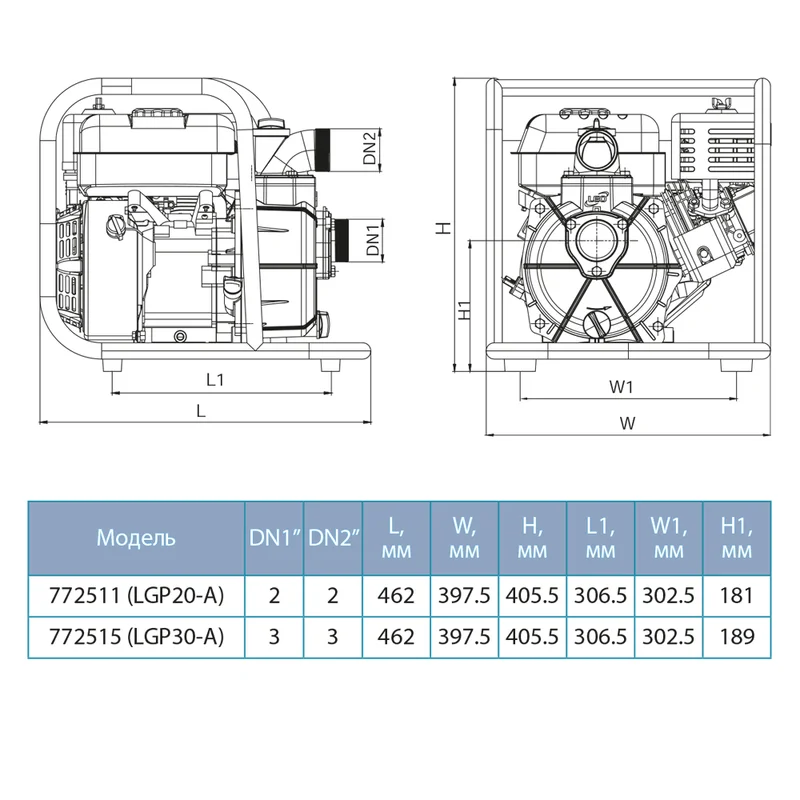 Мотопомпа 6.5л.с. Hmax 30м Qmax 60м³/ч (4-х тактний) LEO LGP30-A (772515)