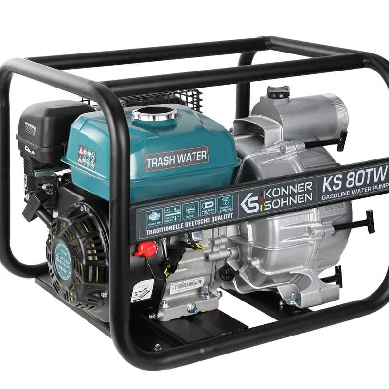 Фірмові двигуни, що використовуються в мотопомпах «Könner & Söhnen», зносостійкі та економічні, виробляються під пильним контролем німецьких інженерів. Надійний двигун Könner & Söhnen відповідає всім європейським стандартам якості, в тому числі сучасному екологічному стандарту EURO V.