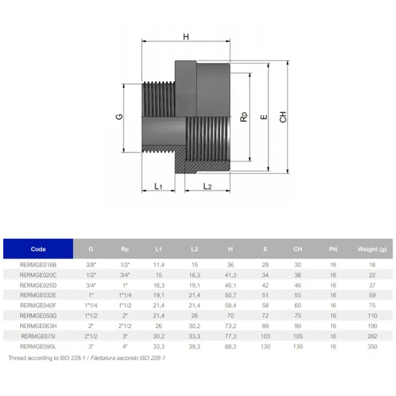 Муфта ПВХ Effast RERMGE032E редукційна, з зовнішньою і внутрішньою різьбою d1"х1-1/4"