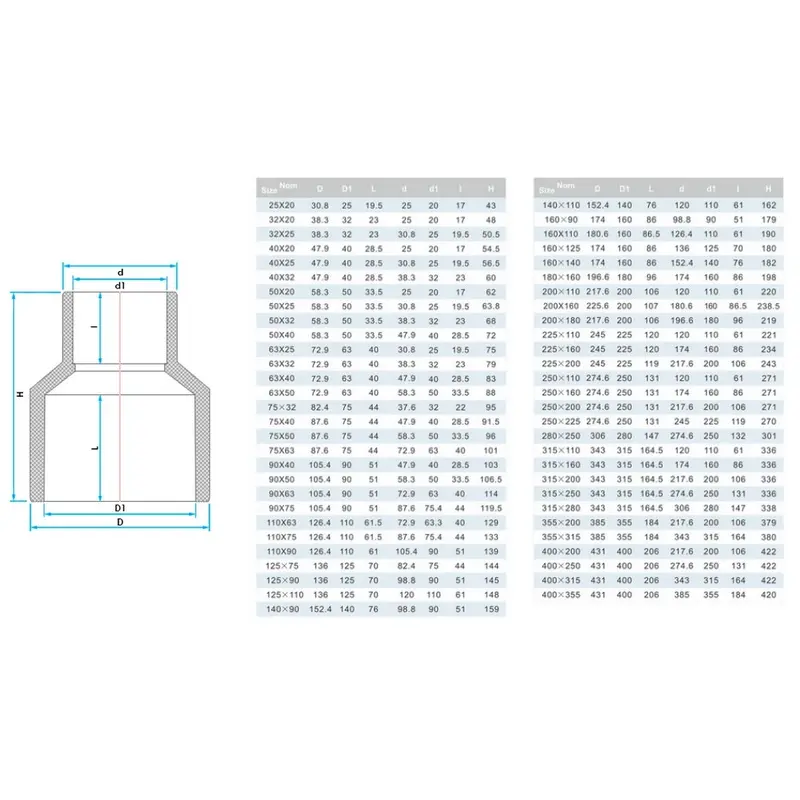 Редукційна муфта ПВХ Era US00490 з непластифікованого полівінілхлориду PVC-U.Вироби з ПВХ оптимальні для транспортування рідин до 60°C під тиском. При збільшенні температури робочої рідини граничний тиск знижується.Ціна вказана за одну одиницю.