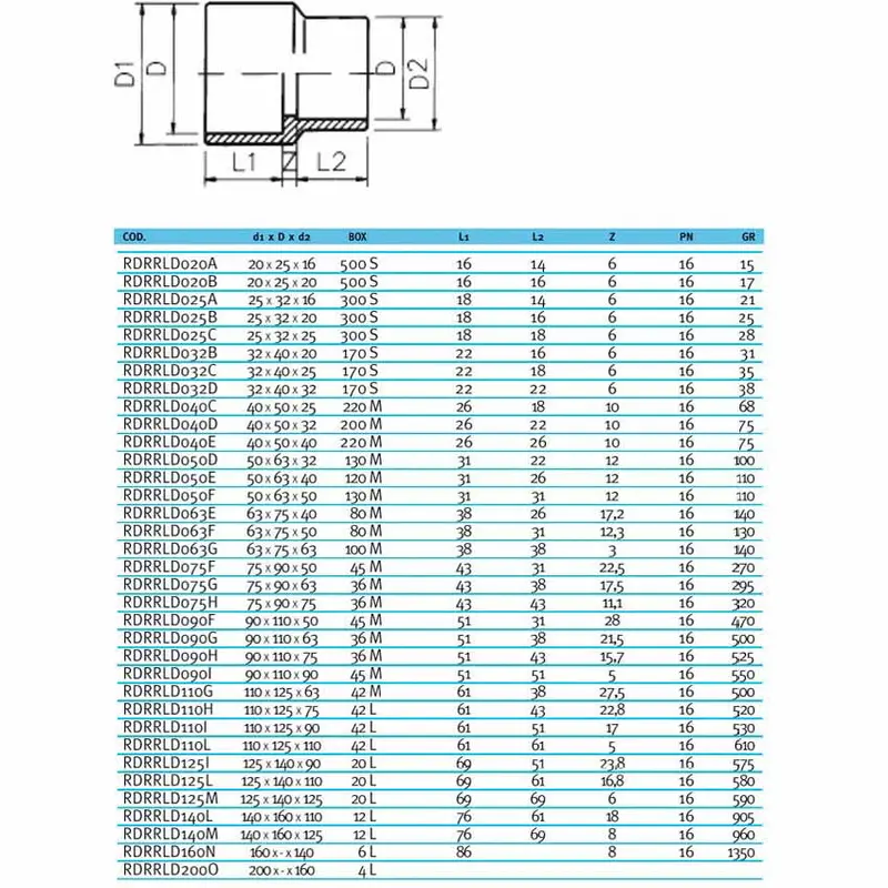 Муфта-втулка перехідна ПВХ Effast d200x160 мм RDRRLD200O виготовлена з непластифікованого полівінілхлориду PVC-U. Виробництво Італія. Вироби з ПВХ оптимальні для транспортування рідин від 1 до +60°C під тиском. Можуть використовуватися в системах водопостачання і водопідготовки. Ціна вказана за одну одиницю