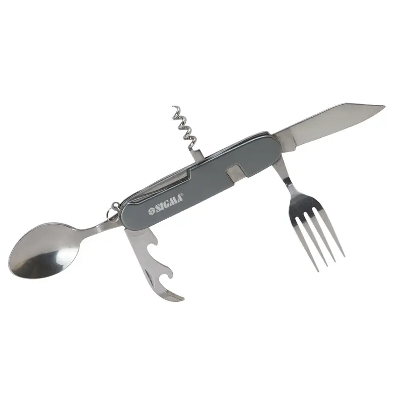 Мульті інструмент ніж похідний 7в1 Sigma 4375611 виготовлений на базі повноцінного ножа і виконаний з високоякісної нержавіючої сталі 3Cr13, містить мінімальний набір необхідних інструментів. Ніж зручно лежить в руці, завдяки ергономічній формі рукоятки. Переваги: Конструкція з нержавіючої сталі; Ергономічна анодована алюмінієва рукоятка; Ідеальний інструмент для щоденного використання. 7 предметів: Великий ніж; Штопор; Відкривачка для пляшок; Консервний ніж; Підвіс; Вилка; Ложка. Купити мульті інструмент Sigma Ви можете, оформивши замовлення в нашому інтернет-магазині за допомогою простої форми, доставка здійснюється по всій Україні. Якщо у Вас виникли питання, Ви можете зателефонувати за вказаними номерами телефонів або замовити зворотній дзвінок. Фахівці нашого інтернет-магазину нададуть Вам докладні консультації та допоможуть зробити правильний вибір. ПАРАМЕТРИ: Артикул : 4375611Тип : мульті інструментОфіційна гарантія Від виробника