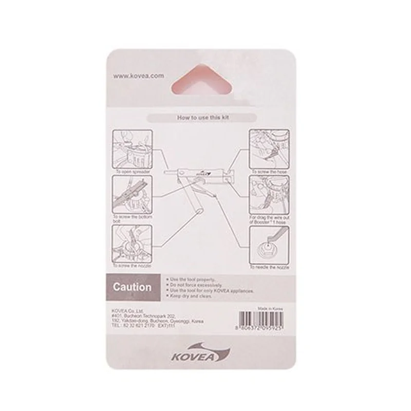 Полагодити пальники за допомогою підручних засобів досить складно, тому ми пропонуємо придбати багатофункціональний інструмент Kovea KB-0603 Tool. Він дозволить полагодити і прочистити пальники наступних моделей: Kovea KB-0810, KB-0603 і KB-N0810, не використовуючи будь-які інші інструменти.