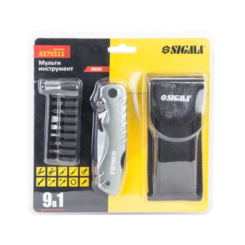 Мультиінструмент ніж 9в1 + біти (чохол) SIGMA (4375511)