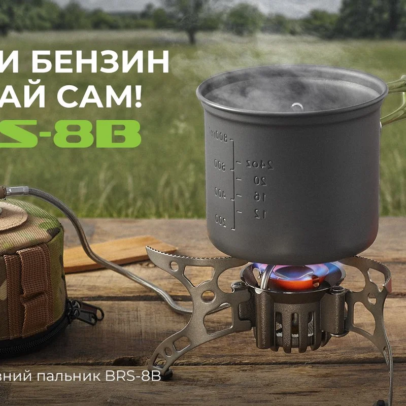 Мультипаливний пальник BRS-8B є портативним пристосуванням для пікніків, туристичної діяльності, різних видів активного відпочинку. Нафтогазове подвійне призначення. Потужність пальника досягає 4500 Вт. Матеріали у складі виробу: сплави алюмінію та міді.