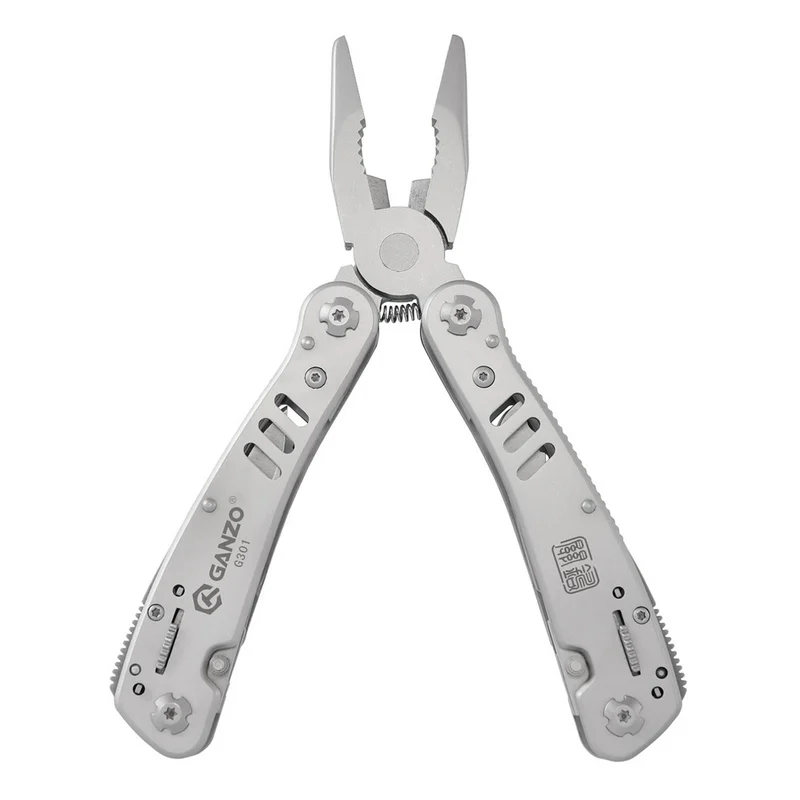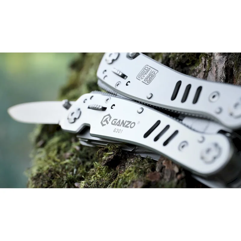 Зручний повнорозмірний мультитул G301 від компанії Ganzo. Великий набір інструментів дозволяє використовувати модель G301 для повноцінного ремонту різноманітної техніки. В комплект мультитула G301 входять наступні інструменти: підпружинені плоскогубці з кусачками, два леза, одне з яких має серейторну заточку, дві плоских викрутки різного розміру, пилу по дереву, ножиці, зенковку, подовжувач для адаптера, консервний ніж.