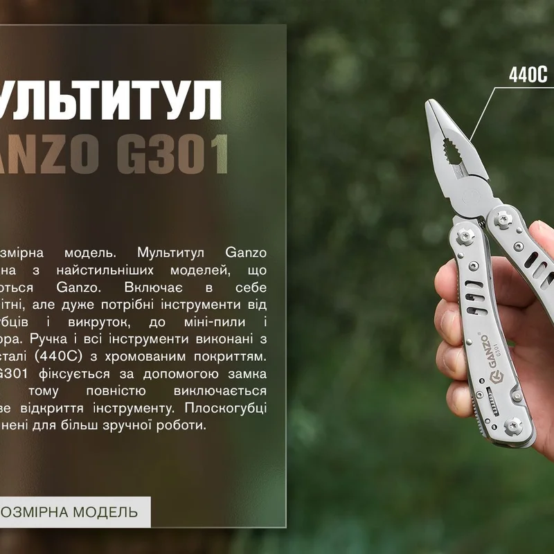 Мультитул Ganzo фіксується за допомогою зручних замків, тому повністю виключається випадкове відкриття інструменту. Таким чином, володар може бути повністю впевнений в безпеці експлуатації.