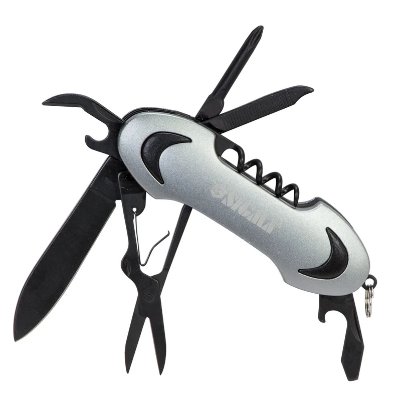 Мульті інструмент ніж 10в1 (чохол) Sigma 4375531 виготовлений на базі повноцінного ножа і виконаний з високоякісної нержавіючої сталі 3Cr13, містить мінімальний набір необхідних інструментів. Ніж зручно лежить в руці, завдяки ергономічній формі рукоятки. Кріпильне кільце дозволяє кріпити ніж до одягу або спорядження. Переваги: Конструкція з нержавіючої сталі; Чорнене покриття робочих частин; Ергономічна анодована алюмінієва рукоятка; Чохол з можливістю підвісу до пояса; Ідеальний інструмент для щоденного використання. 10 предметов: Подвес; Открывалка для бутылок; Отвертка плоская SL6; Отвертка крестовая РН1; Большой нож; Штопор; Ножницы; Консервный нож; Пилочка; Пушер. Купить мультиинструмент Sigma Вы можете, оформив заказ в нашем интернет-магазине с помощью простой формы, доставка осуществляется по всей Украине. Если у Вас возникли вопросы, Вы можете позвонить по указанным номерам телефонов или заказать обратный звонок. Специалисты нашего интернет-магазина предоставят Вам подробные консультации и помогут сделать правильный выбор. ПАРАМЕТРИ: Артикул : 4375531Тип : мульті інструментОфіційна гарантія Від виробника