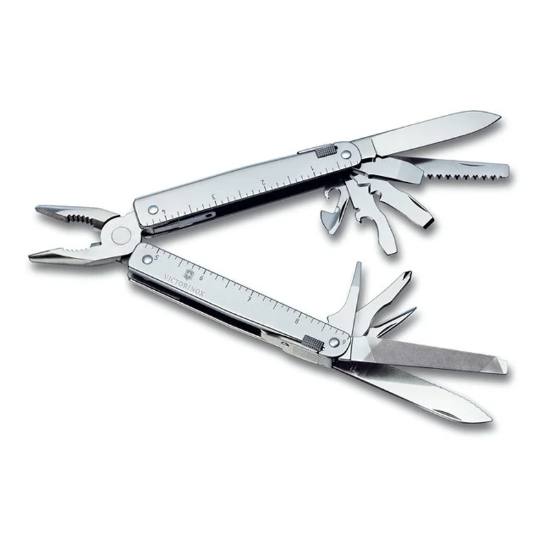 SwissTool на перший погляд - це пасатижі з ручками-лінійками. Але ручки – це піхви для великої кількості інструментів: великого леза, відкривачок, пили по дереву, напилка, ножівки по металу, викруток і багато чого іншого.