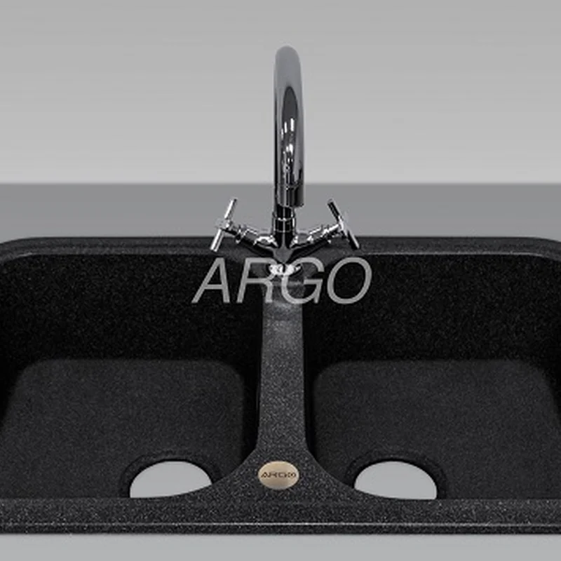 Мийка для кухні ARGO Gemelli 765х470х190 чорний, з отвором для змішувача
