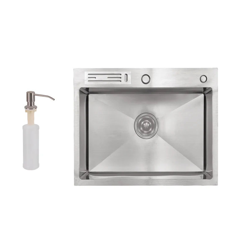 Мийка для кухні інтегрована з полицею для ножів Lidz Handmade LH5050T (LDLH5050TBRU43022) Brushed Steel 3,0/1,0 мм