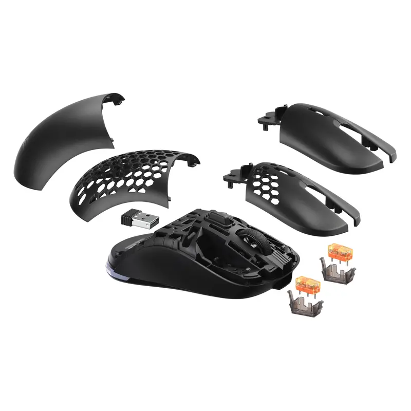основні перемикачі Kailh (80 млн натискань) або TTC Gold (60 млн натискань), бічні перемикачі Kailh GM 4.0 Red (60 млн натискань), енкодер колеса прокрутки F-SWITCH, змінні панелі в комплекті