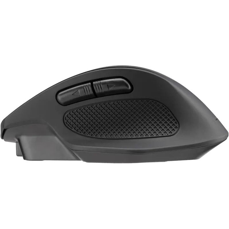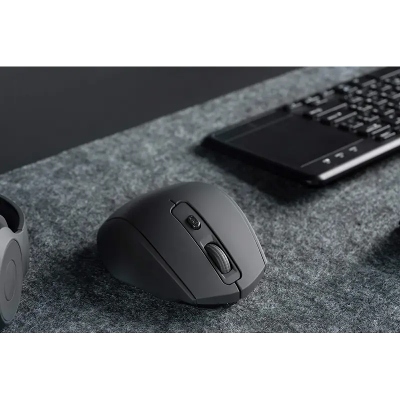 Повнорозмірна, велика мишка анатомічної форми в чорному стриманому дизайні та повністю покрита приємним на дотик Soft Touch фінішем, стане запорукою комфортної роботи. Додаткова підставка під великий палець, з фактурною вставкою, роблять мишку максимально зручною для тривалого використання. Вбудована літій-полімерна батарея забезпечить до 60 днів безперервної роботи, за повного заряду, а за потреби термінового заряджання мишки її також можна легко користуватися в дротовому режимі, під'єднавши до ПК для заряджання.
