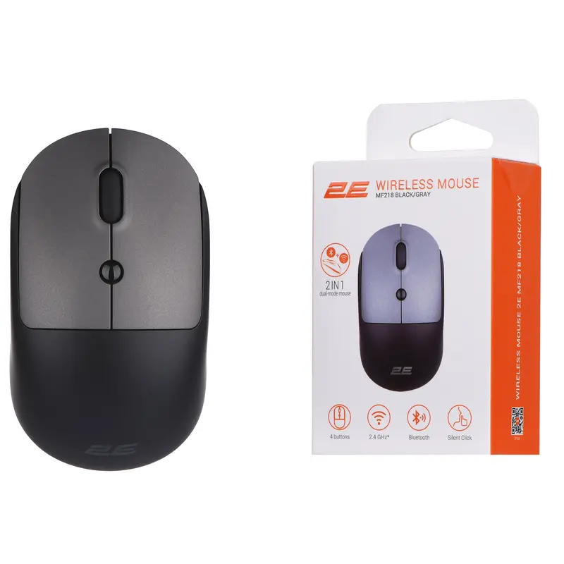 Миша бездротова 2E MF218 Silent Black/Gray (2E-MF218WBG)