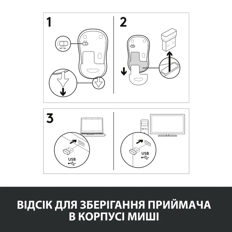 Ласкаво просимо в світ бездротових технологій! Куди б ви не відправилися, миша M185 завжди готова до роботи. Просто вставте приймач в USB-порт на пристрої і починайте працювати - процес підключення займе всього кілька секунд. Завдяки невеликому розміру і плавному управлінню курсором цю модель можна використовувати в обмеженому просторі і на завантаженому робочому столі. Компактна конструкція для зручності роботи Зручна конструкція цієї миші відповідає природній формі руки, тому ви можете працювати з нею тривалий час, не відчуваючи втоми. Невеликий пристрій без проводу можна брати з собою куди завгодно, адже воно легко поміститься в сумку для ноутбука. Модель M185 припаде до душі користувачам, які працюють як правою, так і лівою рукою. Точне управління, проста навігація Завдяки точному позиціонуванню при порядковому прокручуванню миша M185 спрощує навігацію. Оцініть точні рухи миші практично на будь-якій поверхні - оптичний датчик забезпечує плавне вивірене управління курсором. Якість, на яку можна покластися Компанія Logitech по праву вважається провідним світовим виробником клавіатур і мишей. Всі її пристрої відрізняються високою якістю, і ця модель не стала винятком. Міцна і надійна, миша M185 може працювати до 12 місяців від однієї батареї. Вимикач живлення на корпусі і функція автоматичного переходу в сплячий режим допоможуть зберегти заряд на тривалий час. Просте підключення за технологією Plug-and-Play Модель M185 може працювати з операційними системами Windows, macOS, Chrome OS і Linux. Просто вставте USB-приймач в порт на комп'ютері або ноутбуці - і можна без зволікання починати роботу. Приймач забезпечує надійне і стабільне підключення в радіусі до 10 метрів. Максимально швидке виконання завдань Придбайте мишу M185 - і ви зможете виконувати максимальний обсяг роботи в короткі терміни. Згідно з нещодавно проведеним дослідженням продуктивність роботи користувачів ноутбуків, які віддали перевагу цій миші, а не сенсорній панелі, була на 50% вище, а виграш в швидкості склав 30%.