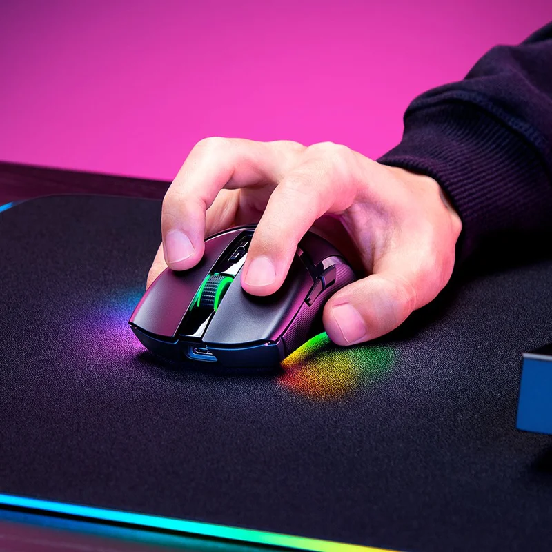Ідеально для гри. Добивайтеся перемог за допомогою Razer Cobra Pro - бездротовою ігровою мишею на базі Razer Chroma RGB. Завдяки технології Razer HyperSpeed Wireless та 11-ти індивідуально програмованим зонам освітлення ваша гра стане більш яскравою та залученою. 10 кнопок, що настроюються. Для розширених макросів у 5 вбудованих профілях. Від основних команд до складних макросів, насолоджуйтесь більшим ступенем контролю на кінчиках ваших пальців і будьте готові до гри будь-де з 5-ма вбудованими профілями пам’яті. 3 режими підключення. Бездротовий режим Razer HyperSpeed, Bluetooth, підключення кабелем. Грайте будь-де до 100 годин у режимі HyperSpeed або 170 годин по Bluetooth. Мишка легко заряджається через USB Type C. Powered by RAZER Chroma RGB. 11-зонне підсвічування Chroma. Налаштуйте кожну зону з майже 16.8 мільйонів кольорів та незліченних світлових ефектів. Випробуйте повне занурення з ігрою RGB, яка динамічно реагує на сотні ігор, інтегрованих з Chroma. 11-зонне підсвічування Chroma. Будь то покращення вашого занурення в іграх, інтегрованих з Chroma, або проектування ігрової кімнати вашої мрії, ми пропонуємо рівень налаштування RGB підсвічування, який не можна знайти більше ні в кого. Компактний форм-фактор та багатофункціональність. Для легкого поводження з різними стилями хвата. Razer Cobra Pro важить всього 77 г, завдяки невеликому та легкому дизайну її зручно тримати в руці, і вона забезпечує плавне занурення в ігровий процес при захопленні кігтями, долонями та кінчиками пальців.