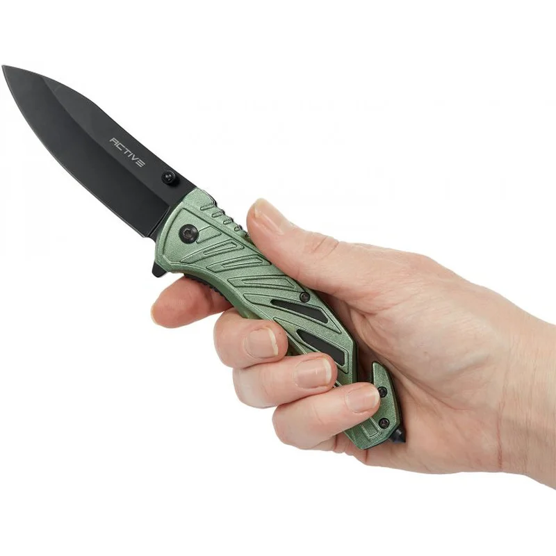 Клинок ножа виконаний у формі Spear point з широким злегка зігнутим обухом і має увігнуті спуски приблизно з 1/3 обуха. Така форма оптимальна для виконання щоденних завдань, оскільки її геометрія дозволяє ефективно різати та проколювати поверхню. Сталлю для клинка стала нержавіюча 3Cr13MoV, яку можна уявити як високорезистентними до корозії й податливу до заточування. Крім того, на клинок нанесено чорне фінішне покриття. Відривається клинок фліпер або шпеником, а фіксується замком Liner Lock. Пластина замка має насічки для більш зручного упору при закритті клинка.