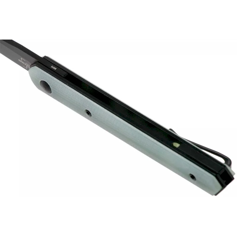 Чіткі лінії і тонкий дизайн були додатково оптимізовані для безкомпромісного зниження ваги в полегшеній версії, хоча ніж як і раніше утримує все лезо в закритому стані. Фліппер забезпечує інтуїтивно зрозуміле управління і додаткову безпеку, а замок лайнера надійно фіксує лезо на шарикопідшипниках з матеріалу VG-10 з чорним покриттям. Легкість папки Gentleman Folder підкреслюється лускою ручки з натурального нефриту G10, напівпрозорого оригінального варіанту міцного композитного матеріалу. Поставляється з отвором для шнурка, знімним затискачем для глибокого перенесення (відкидний /правий) і високоякісним нейлоновим чохлом для зберігання.