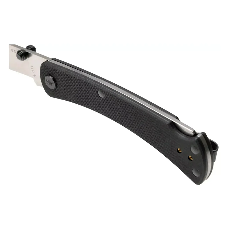 Створений під впливом оригінального 110 Folding Hunter цей 110 Slim Pro TRX є новою ітерацією легенди з покращеним дизайном. Модель 110 Slim Pro TRX зібрана на гвинтах типу Torx замість стандартного вузла заклепок та доповнена новим дизайном кишенькової кліпси для глибокого носіння. Клинок виготовлений із сучасної нержавіючої сталі марки S30V. Відкривається ніж двома шпеньками для великого пальця (з обох боків обуха).