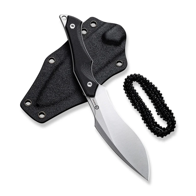 Комплект постачання включає чорні піхви з кайдекса, в яких фіксований ніж зберігається без люфтів і додаткових шумів під час транспортування. У піхвах є отвір для зливу води, а також сім отворів по боках аксесуара, які пропонують необмежену кількість варіантів носіння інструменту. В них можна просмикнути шнурок і фіксувати піхви на поясі або лямці рюкзака. Включений до набору сталевий ланцюжок підходить для носіння ножа на шиї.