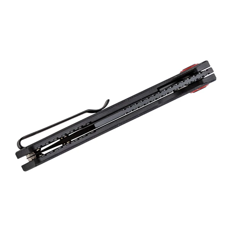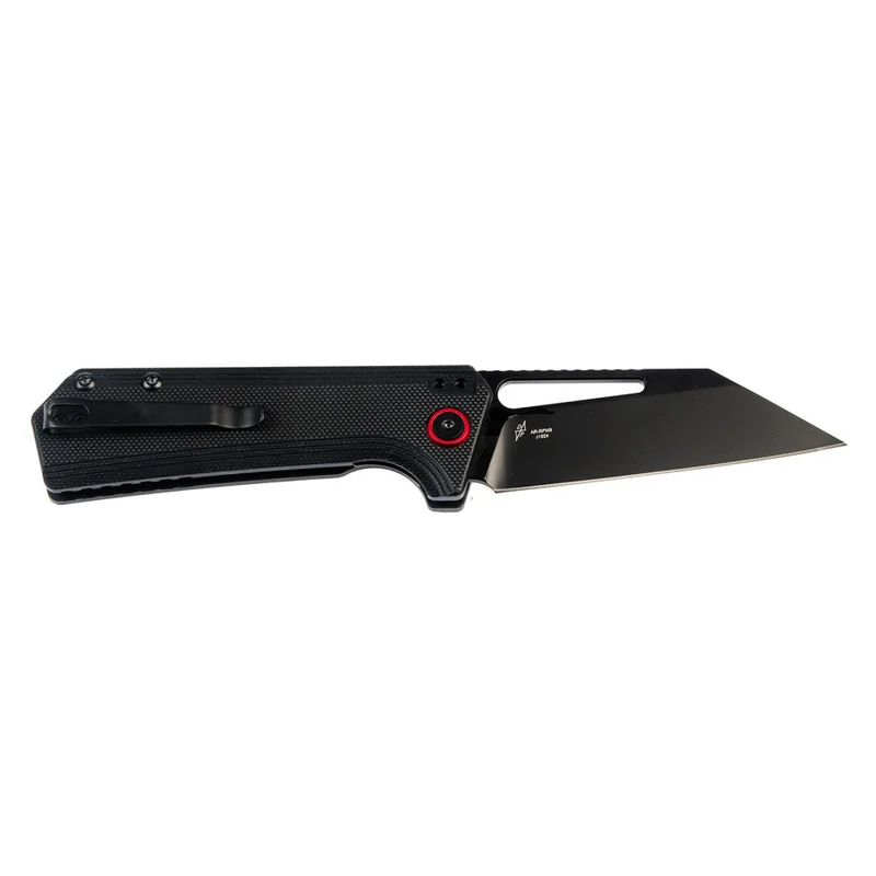 У створенні дизайну нової моделі ножа CJRB Ruffian брав безпосередню участь найфмейкер Дірк Пінкертон та успішно втілив свої ідеї у життя. Ruffian — міцний складаний ніж з клинком профілю Wharncliffe. Для його створення послужила фірмова порошкова сталь компанії — AR-RPM9 (Artisan-Rare Powdered Material 9 Element Steel). Ексклюзивна сталь має однорідну структуру, яка дозволяє зберігати гостру різальну кромку протягом тривалого періоду, проста в правці і відмінно витримує навантаження. Фінішна обробка клинка може відрізнятися залежно від моделі. Це може бути, як і обробка Stonewash, що приховує дрібні подряпини, так і чорне PVD (Physical Vapor Deposition) покриття, яке захищає сталь клинка від корозії. Відкривається за допомогою об'ємного підпальцевого отвору, а фіксується в робочому положенні за допомогою надійного замка Liner Lock. Ергономічні накладки на руків'ї виконані зі склотекстоліту G10. Для максимальної зручності носіння передбачена 4-х позиційна кліпса.