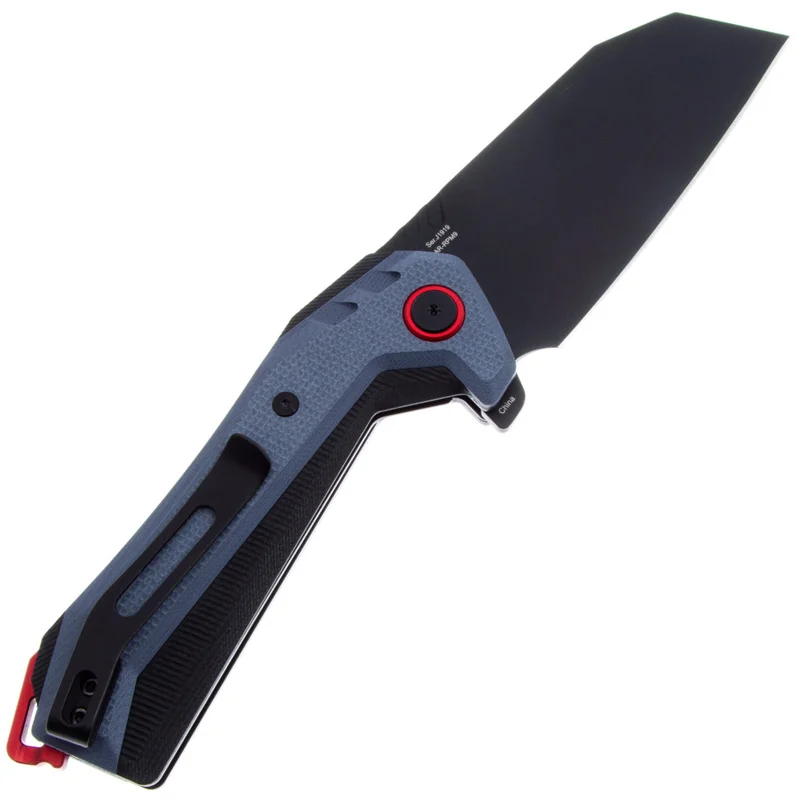 Клинок виконаний з міцної, корозійностійкої сталі AR-RPM9, яка має високі показники зносостійкості, а також здатність зберігати різальну кромку гострою протягом тривалого часу. Високі увігнуті спуски практично від обуха забезпечують якісний різ. Приводиться в робоче положення клинок компактним фліпером і фіксується сталевою пластиною замка Liner Lock. Наявність системи керамічних шарикопідшипників забезпечує плавний вихід клинка.