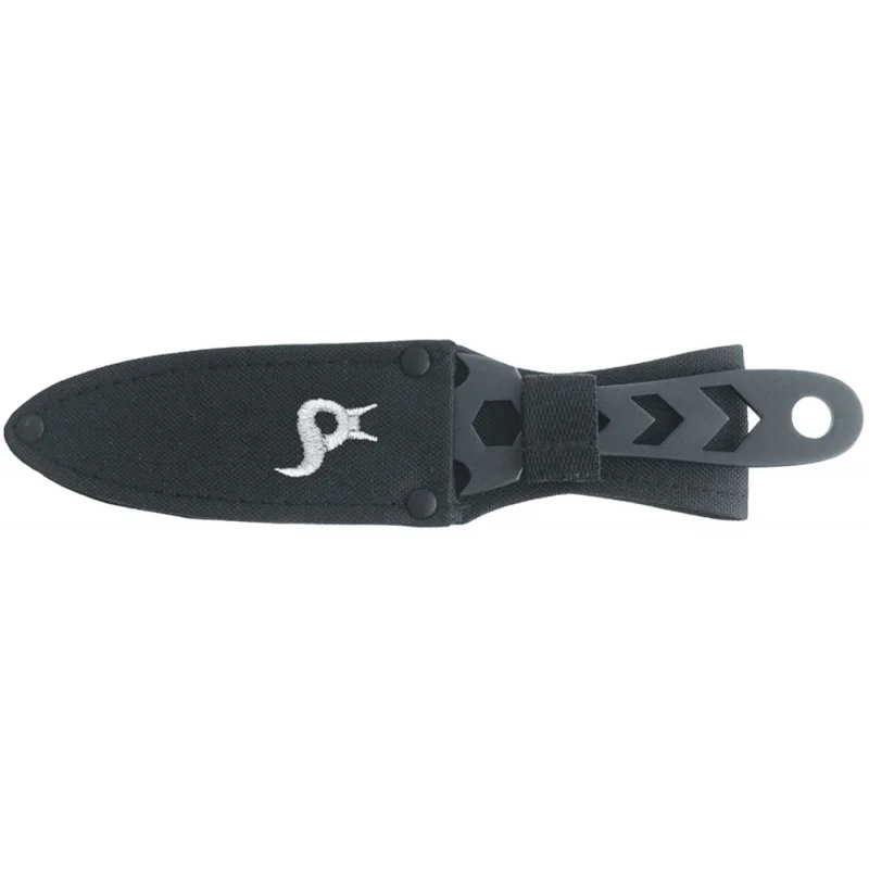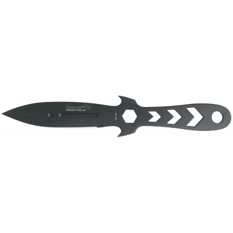 Линейка метательных ножей Black Fox предназначена, в первую очередь, для отработки попадания в цель, а также может использоваться для выполнения ежедневных задач. Клинок профиля Spear Point выполнен из высокоуглеродистой нержавеющей стали марки 440 твердостью 55-57 HRC. Для дополнительной износостойкости клинок имеет чёрное титановое покрытие. Рукоятка выполнена из нержавеющей стали 440А, а благодаря обилию отверстий разной формы, придается множество вариантов крепления ножа к снаряжению. В комплекте идут влагалища из крепкого нейлона.