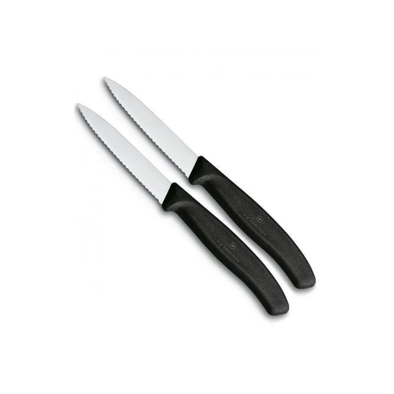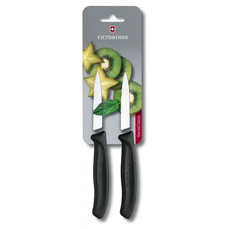 Набір з 2-х ножів для очищення Swiss Classic Paring Set з лезом 8 см (серрейтор) і чорною ручкою (упаковка: блістер) Victorinox 6.7633.B Країна бренду: Швейцарія