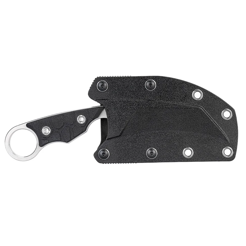 Клинок сягає 86 мм у довжину та має вигнуте лезо з прямим заточуванням, яке справляється з різанням всього, що трапляється йому на шляху. Тонкий кінчик особливо зручний у здійсненні акуратних розрізів, чи то тканина, гума або м'ясні харчові продукти На обуху є насічки. Вони виконують роль упору для пальця.