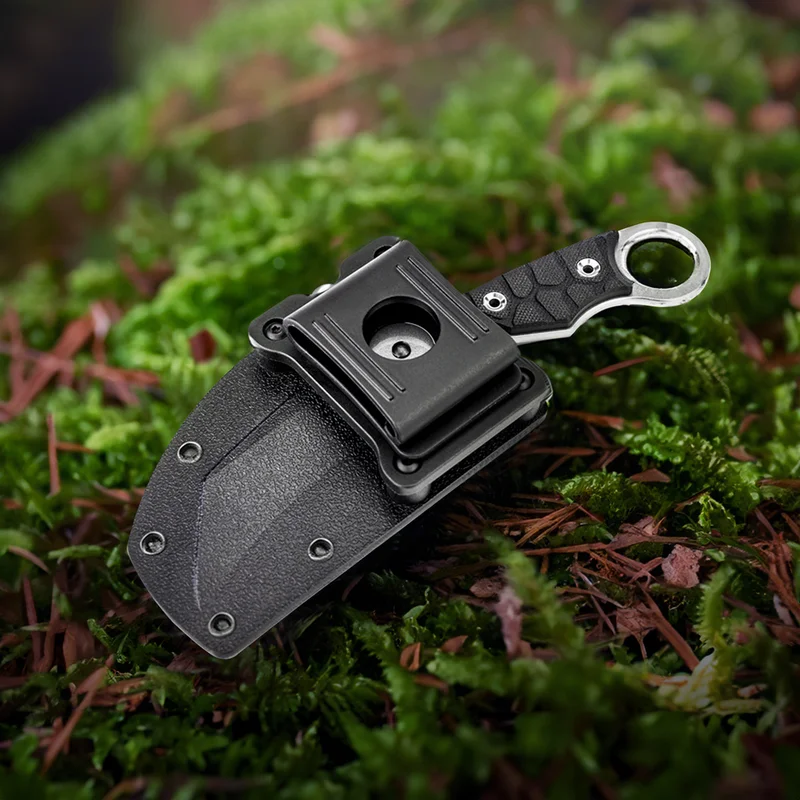 На руківʼї закріплені чорні плашки зі склотекстоліту G10. Це один із найкращих матеріалів на сучасному ринку, що повсюдно застосовується в ножовій промисловості. Його популярність обумовлена міцністю, легкістю та несприйнятливістю до впливу низки негативних факторів, зокрема температурних перепадів та агресивних рідин. Текстурована поверхня плашок підвищує зручність утримання конструкції. Цьому також сприяє глибока підпальцева виїмка, яка не дає пальцям зіслизнути на лезо.