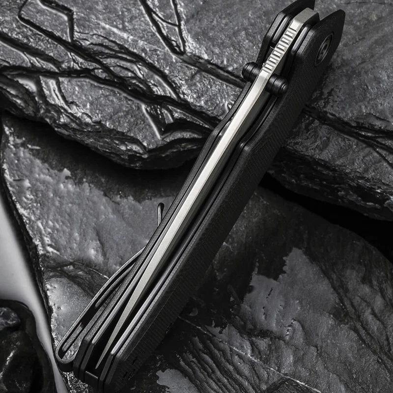 Рукоятка моделі зроблена із застосуванням склотекстоліту G10. Міцний та легкий матеріал із скловолокна та синтетичної смоли. Легка текстура чудово лежить у руці та забезпечує достатнє захоплення. Ніж має кліпсу, за допомогою якої легко закріпити на рюкзаку, сумці, підвісити до кишені або на поясі.