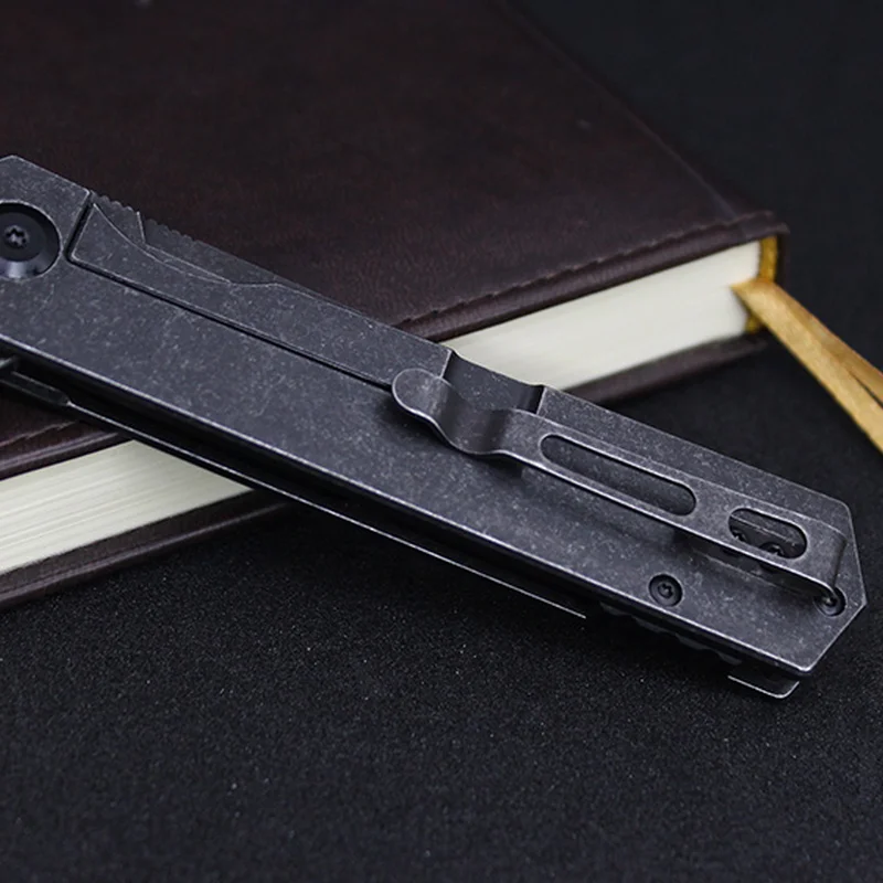 Для рукоятки виробники також вирішили використовувати метал. Проте для цієї деталі була обрана більш стійка до впливу води нержавіюча сталь. Форма ручки дуже проста, без будь-яких надмірностей у дизайні. Але оригінальність їй забезпечує така ж фінішна обробка, як і у леза ножа. А для зручності користувачів, до рукоятки прикручена невелика сталева кліпса, що дозволяє зафіксувати інструмент в кишені або на поясі.